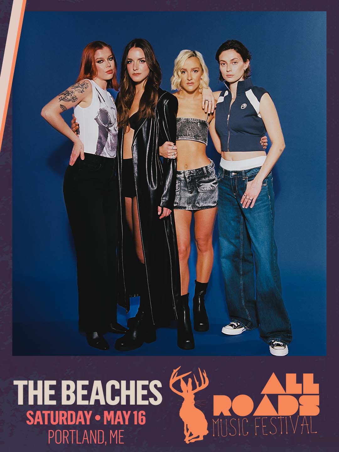 May 15 & 16 – Portland, ME Single Day and 2-Day Passes On Sale Now. View Past Lineups 2026 TICKETS TICKET TYPES All Roads Sponsors ARTIST LINEUP Friday, May 15 Mon Rovîa Woods Palaver Strings Oshima Brothers Small Pond Fai Laci Saturday, May 16 The Beaches Bahamas Momma Angélica Garcia They Are Gutting a Body of Water Lilly Fitts Touching Ice Genevieve Stokes Thelma and the Sleaze Angelikah Fahray Louisa Stancioff The HIRS Collective PINKLIDS Becca Biggs Nova One Lolabelle Erik James Greasy Grass Chained to the Bottom of the Ocean Jaylen White Adele Edelawit Savoir Faire Myles Bullen Sister Ray Ada Bonnevie Just Milk The Brudi Brothers Hymn for Her Glassfishis theWorst Holy Filth Jamie O’Sullivan Mouth Washington Daze Inn x BB-808 Jacobsen Stay On Mars All Roads: Portland 2026 Spotify Playlist Portland May 15 & 16, 2026 Belfast October 16 & 17, 2026 Contact info@allroadsmusicfest.com Our Social Networks Performing at the Fest Artist Inquiries